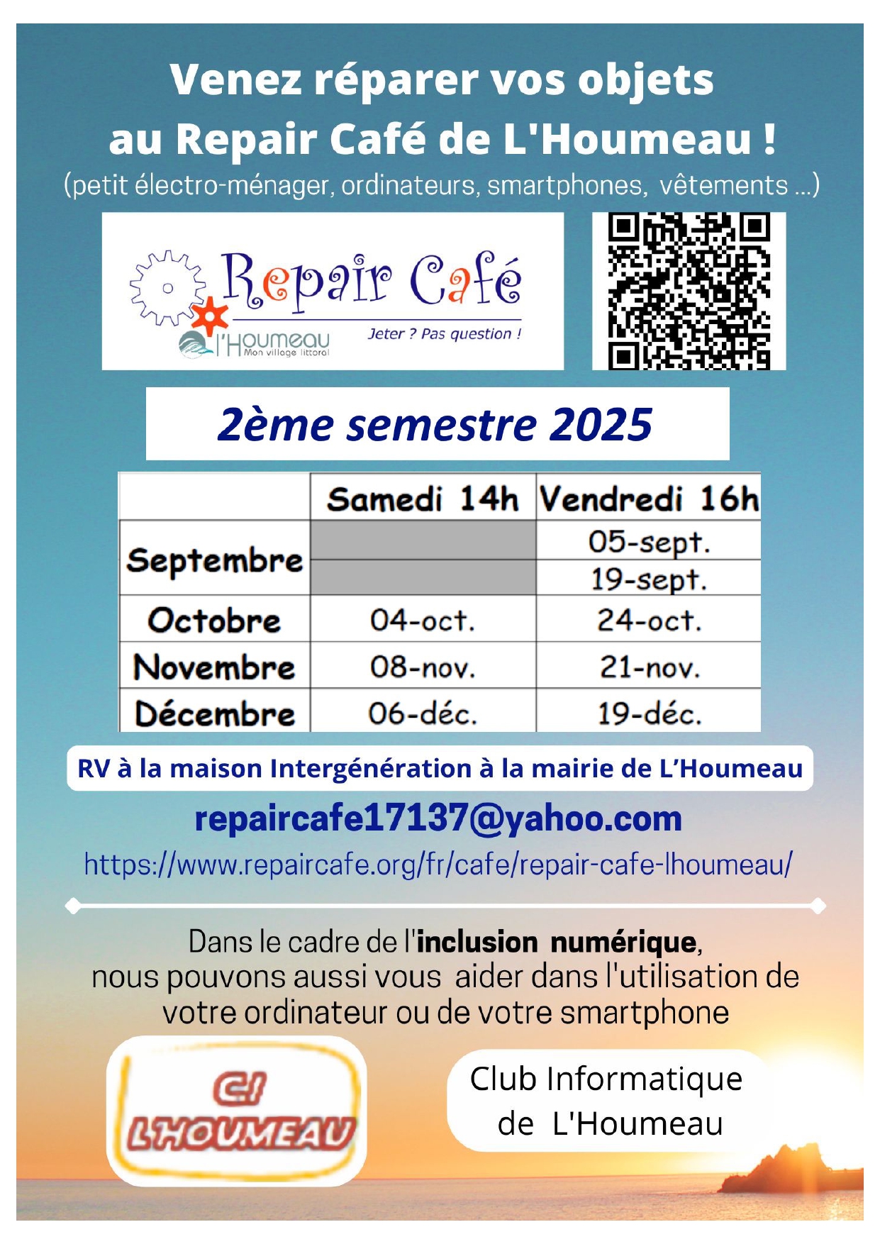 Le Repair Café de L’Houmeau vous accueille tout au long de l’année à la Maison Intergénérations, pour réparer ensemble petits électroménagers, objets du quotidien, vêtements, vélos, etc.